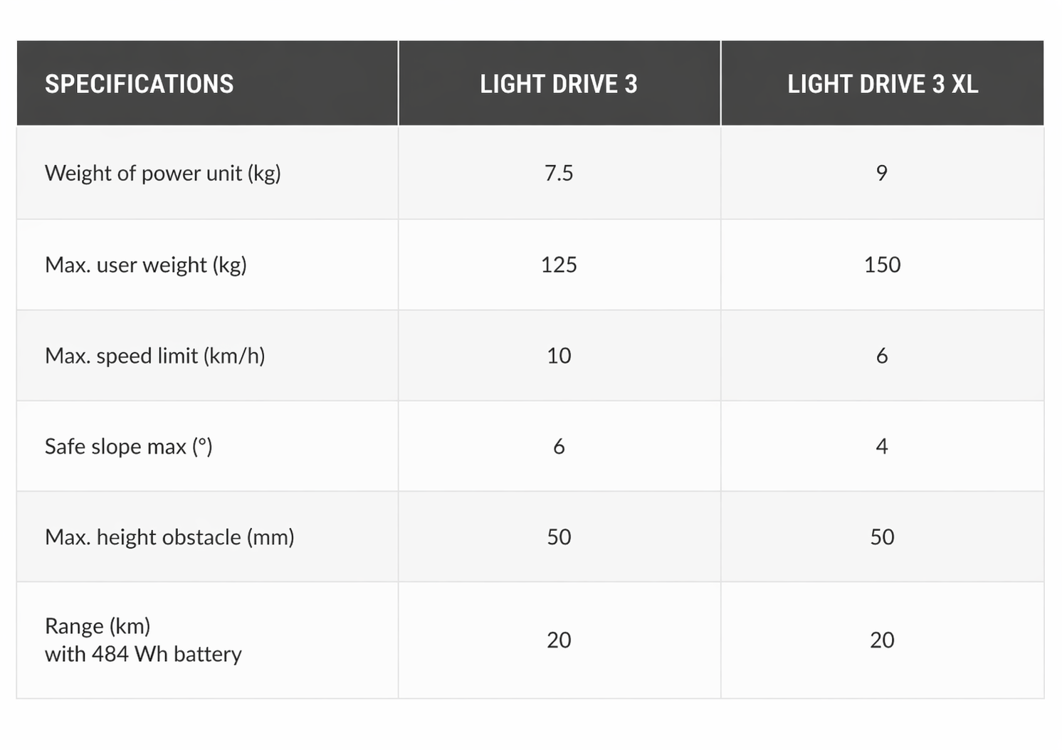 • Suitable for home, community use and travel by car, air or train, compatible with most rigid and folding wheelchairs, with an XL model available up to 150 kg and a companion-operated option (Light Assist 2.1) for carer support